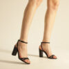 סנדל עור קלאסי יפיפה, עקב 9 ס"מ גובה, יציב וגבוה, אלגנטי מאד. שורות אבנים שחורות מעטרות את הרצועות שעל הסנדל ומעניקות לו מראה יוקרתי ואל זמני.