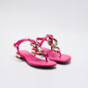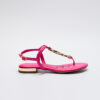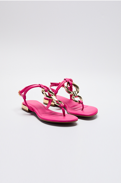 סנדל אצבע שטוח עשוי דמוי עור, ומשולב בתכשיט מוזהב בצורת טבעות. עם רצועות ניתנות לכיוונון לפי הנוחות.