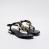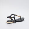 סנדל אצבע שטוח עשוי דמוי עור, ומשולב בתכשיט מוזהב בצורת טבעות. עם רצועות ניתנות לכיוונון לפי הנוחות.